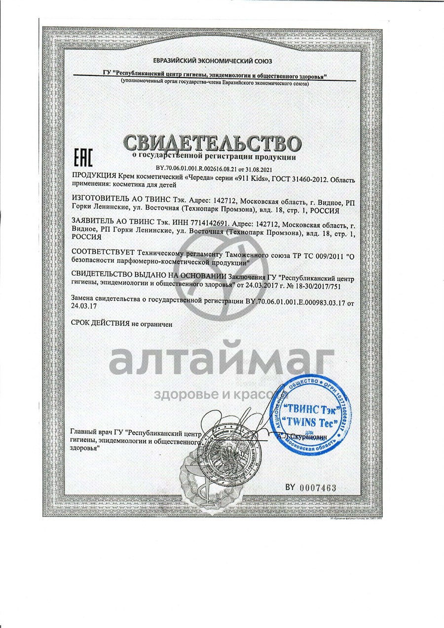 - Купите Крем детский ЧЕРЕДА под подгузник от опрелостей 911 KIDS в Артёме по доступной цене 297 ₽ с доставкой на дом или заберите Ваш заказ в Артёме из ближайшего пункта выдачи, сделав заказ на AltaiMag.ru.