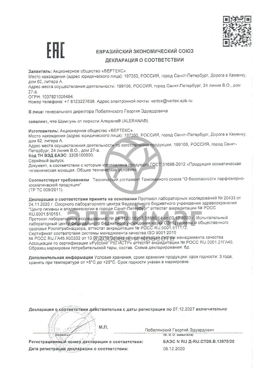 - Чтобы купить Алерана шампунь для волос против перхоти 250мл совершите всего несколько шагов: укажите количество продукта и нажмите на кнопку «Купить».