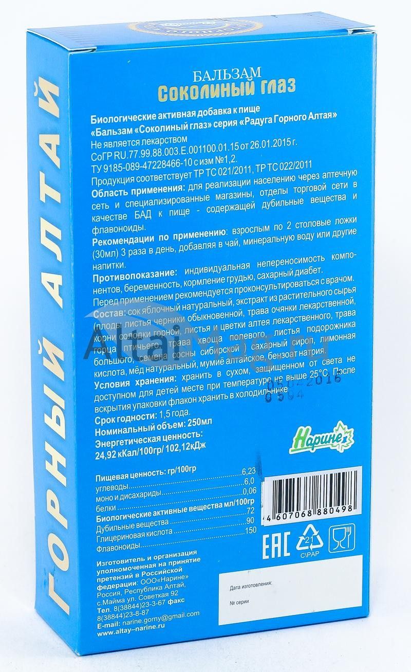 - Купите Бальзам Соколиный глаз, 250мл в Артёме по доступной цене 270 ₽ с доставкой на дом или заберите Ваш заказ в Артёме из ближайшего пункта выдачи, сделав заказ на AltaiMag.ru.