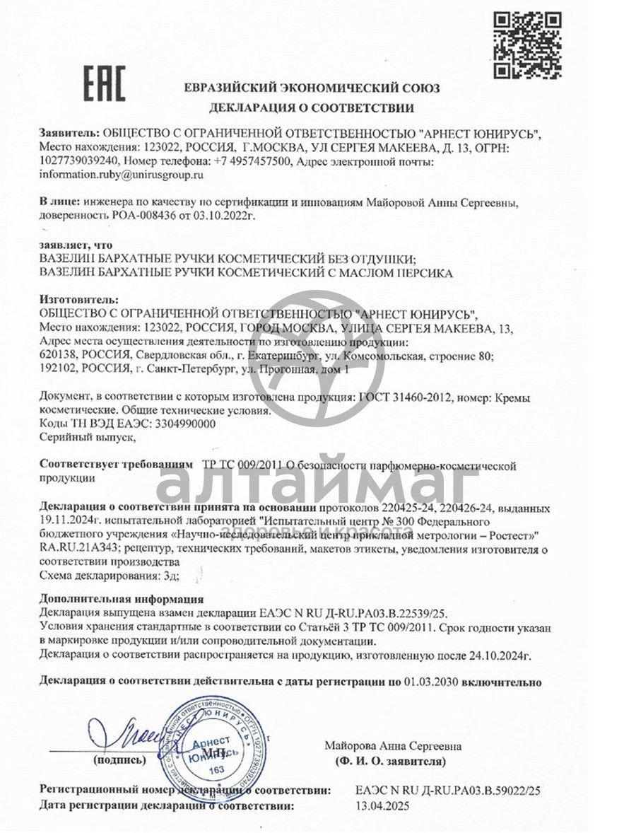 Есть вопросы по товару "Вазелин косметический от трещин и шелушений Бархатные ручки 50мл"?
