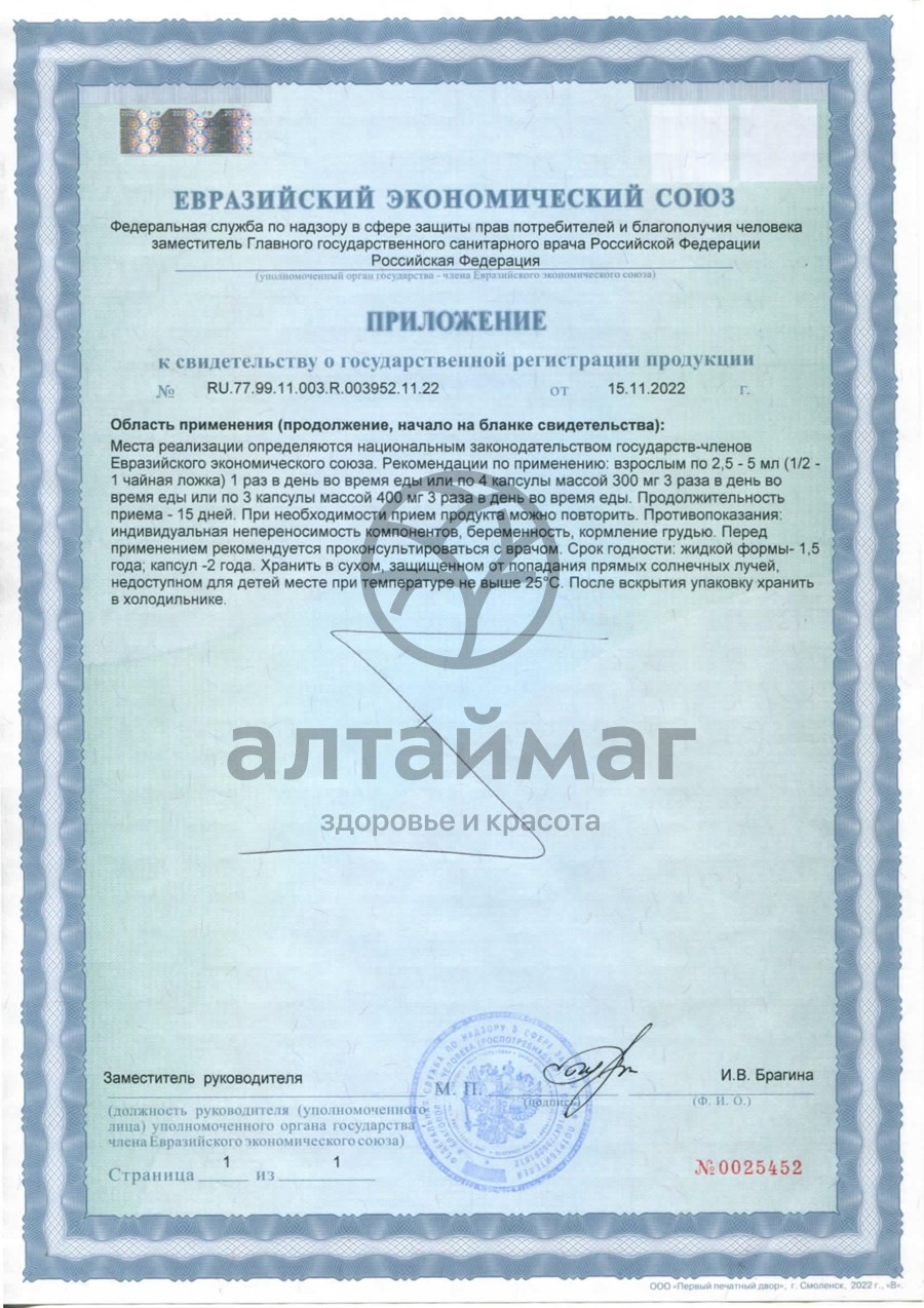 Способ применения: ежедневно по 15 капсул 3 раза в день. Длительность приема - 1месяц, можно повторять 2-3 раза в год.