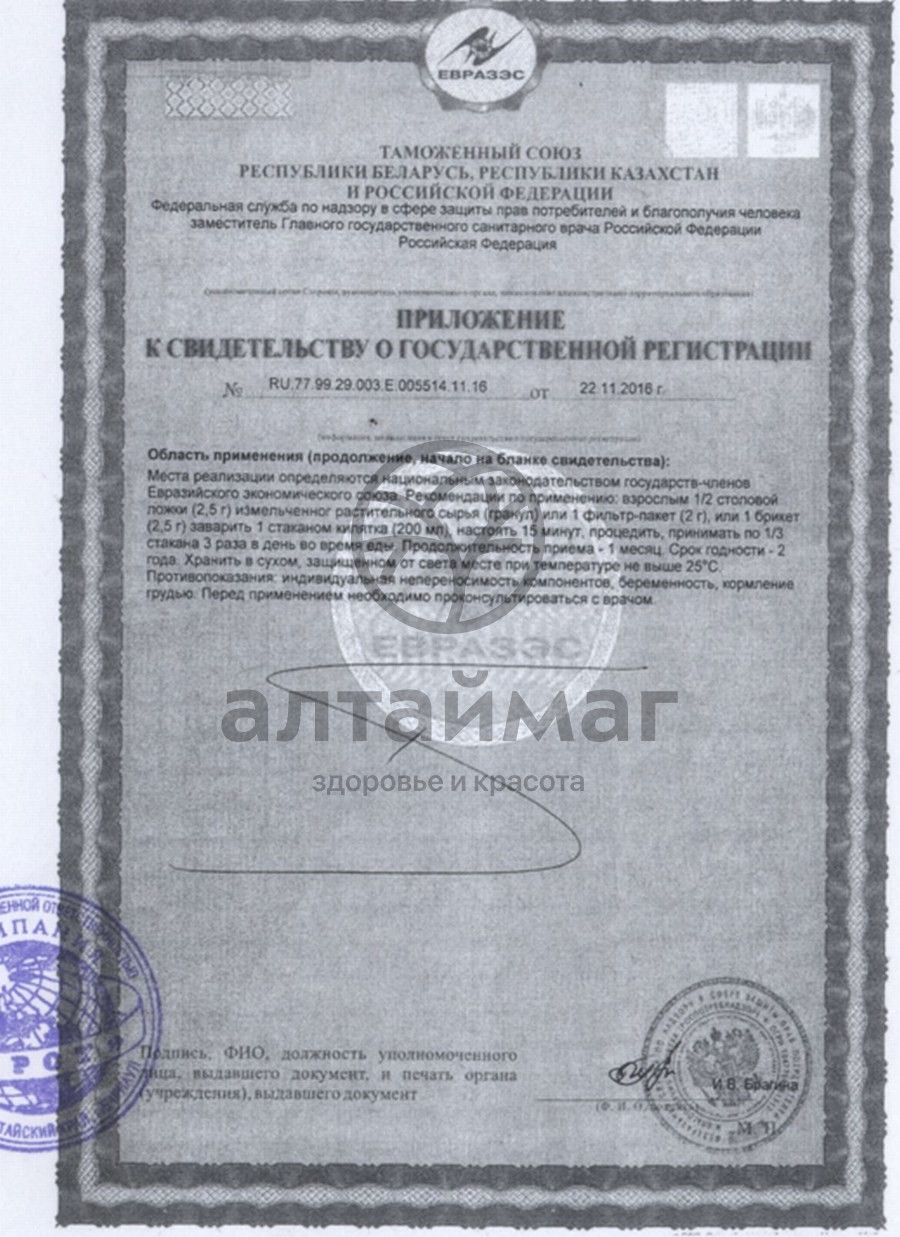 Рекомендуется в качестве источника полифенольных соединений, содержит хромогенный комплекс. Чага обладает свойствами: способствовать заживлению язвы двенадцатиперстной кишки, а также язвы желудка; положительным образом сказывается на работе нейрогуморальной и нервной системы нашего организма; чага обладает свойством улучшать работу желудочно-кишечного тракта; очень неплохо укрепляет иммунитет; обладает антибактериальными свойствами; вполне может использоваться как мочегонное средство; чага обладает свойством стабилизировать пульс и нормализует давление; оказывает влияние на дыхательную и сердечно-сосудистую систему; является противовоспалительным средством; чага обладает антивирусными, а также антигрибковыми свойствами; способствует заживлению ран различной степени тяжести; борется со злокачественными новообразованиями; чага уменьшает уровень сахара в крови.Масса нетто: