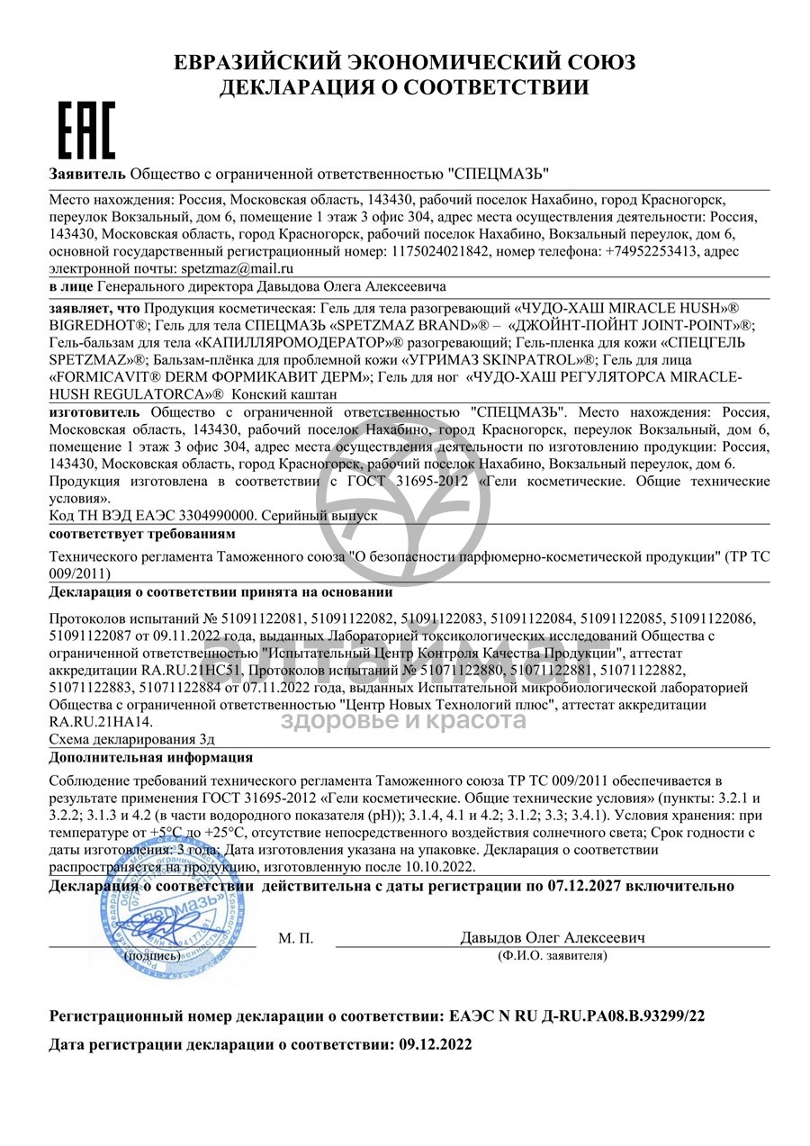 Крем для тела "Чудо-Хаш" способствует пополнению запасов кальция и коллагена в области суставных соединений, «вымывание» которых, может привести к полной дегенерации хряща (вследствие этого, усилению трения в разрушенной суставной сумке и «оголению» нервных окончаний) последующему инфицированию и воспалению.