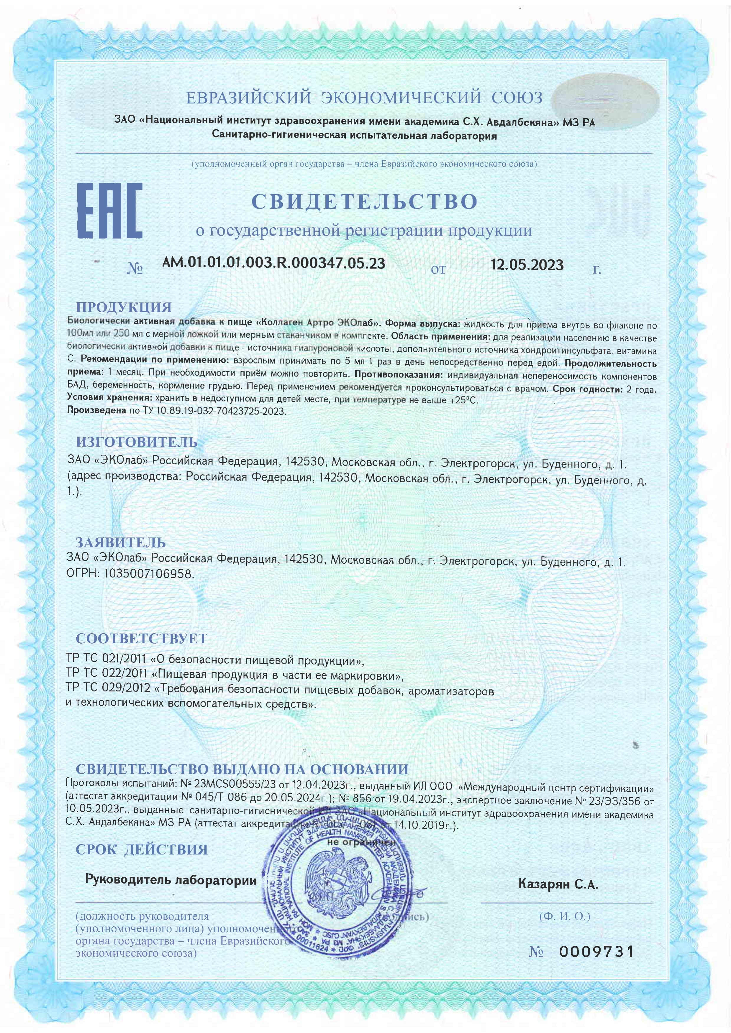 "Коллаген Артро ЭКОлаб" от фармацевтической компании "ЭКОлаб" выпускающей качественные лекарственные препараты и БАД с 1991 г.