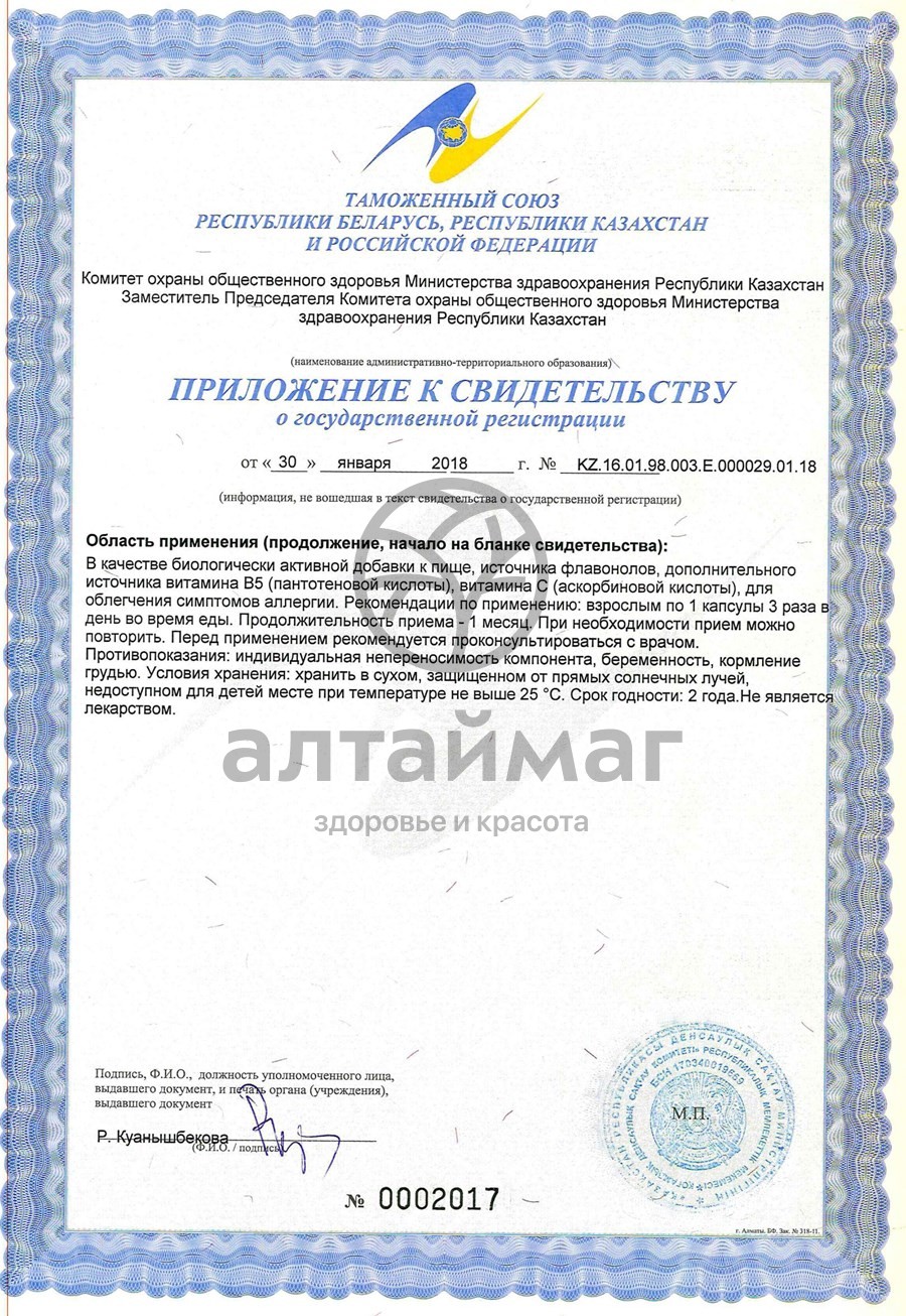 Дополнительный источник флавонолов, витамина В5, С. Фитосбор для облегчения симптомов аллергии способствует снятию воспалений, кожного зуда, отеков, а также уменьшению других проявлений аллергических реакций, усиливает эффект лекарственных препаратов, уменьшает негативные последствия от приема химических веществ. Рекомендуется при затяжной аллергической реакции, тем, кто страдает от хронической формы этого заболевания.