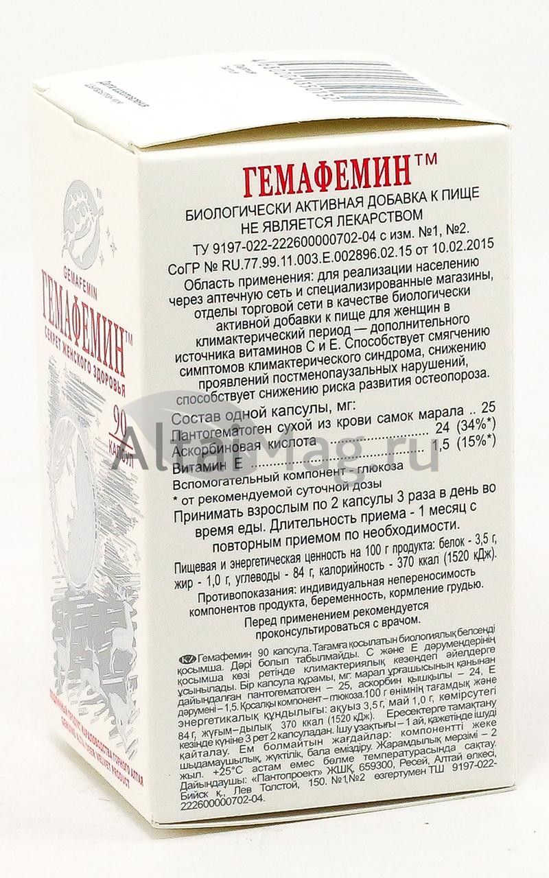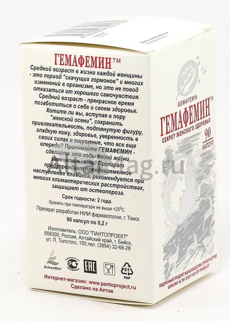 - Купите Гемафемин, 90 капс. в Артёме по доступной цене 911 ₽ с доставкой на дом или заберите Ваш заказ в Артёме из ближайшего пункта выдачи, сделав заказ на AltaiMag.ru.