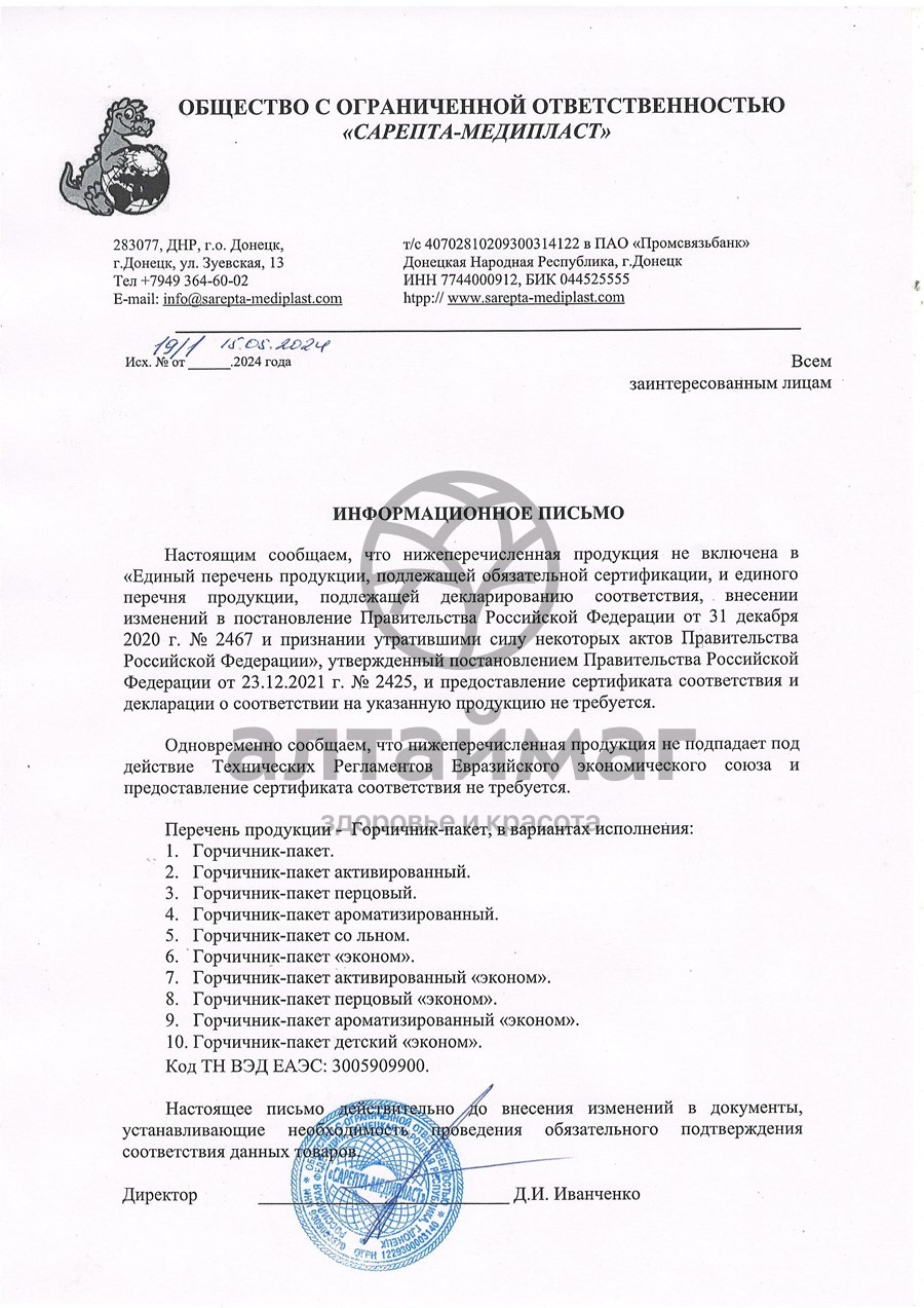 Есть вопросы по товару "Горчичник-пакет сарепта эконом №10"?