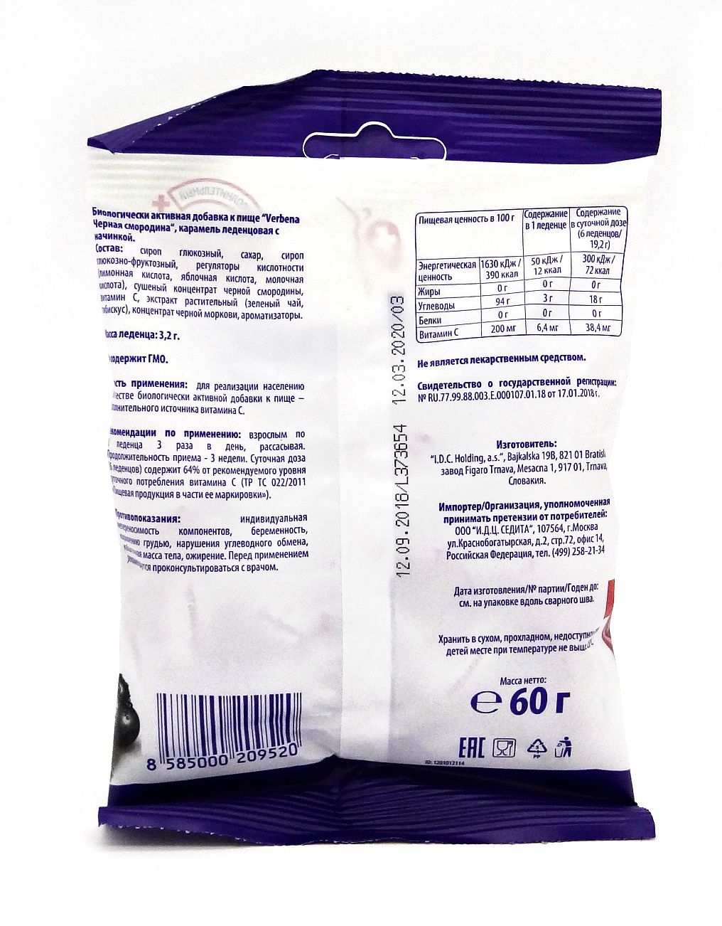 - Чтобы купить Карамель Verbena черная смородина 60г совершите всего несколько шагов: укажите количество продукта и нажмите на кнопку «Купить».