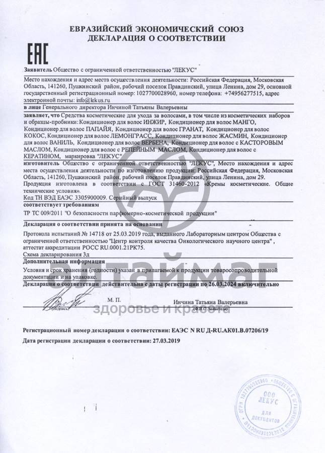 Aqua, Cetearyl Аlcohol, Cetrimonium Chloride, Begentrimonium Chloride, Hydrolyzed Keratin, Laurdimonium Hydroxypropyl, Hydrolyzed Wheat Protein, Hydroxyethylcellulose, Cocos Nucifera (Coconut) Oil, Cymbopogon Martini (Palmarosa) Essential Oil, Citrus Limon (Lemon) Essential Oil, Tocopheryl Acetate, Retinyl Palmitate, Panthenol, Parfum Composition, Methylchloroisothiazolinone, Methylizothiazolinone, Citric Acid.Характеристики: