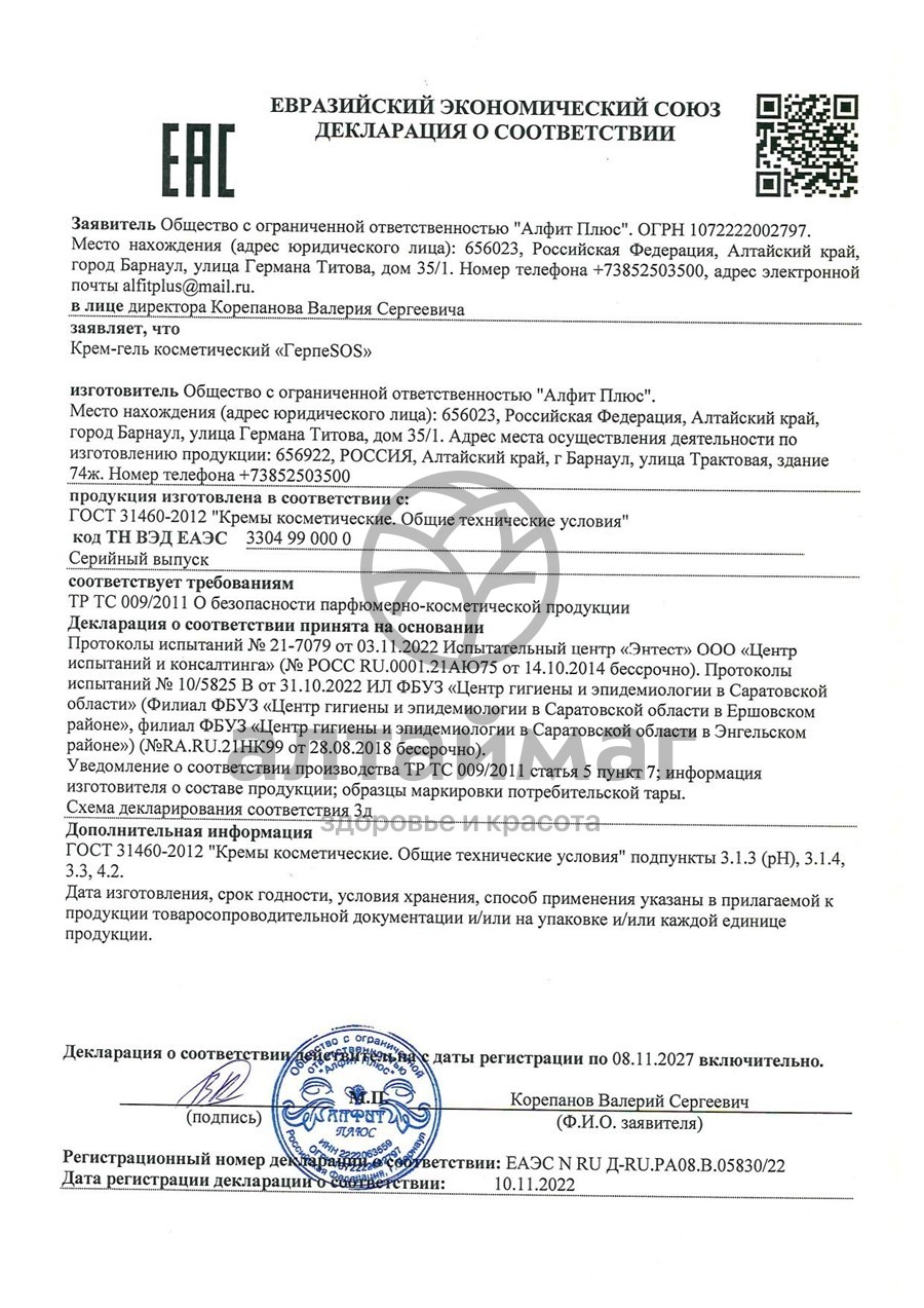 Есть вопросы по товару "Крем-гель Герпеsos Алфит 5мл"?