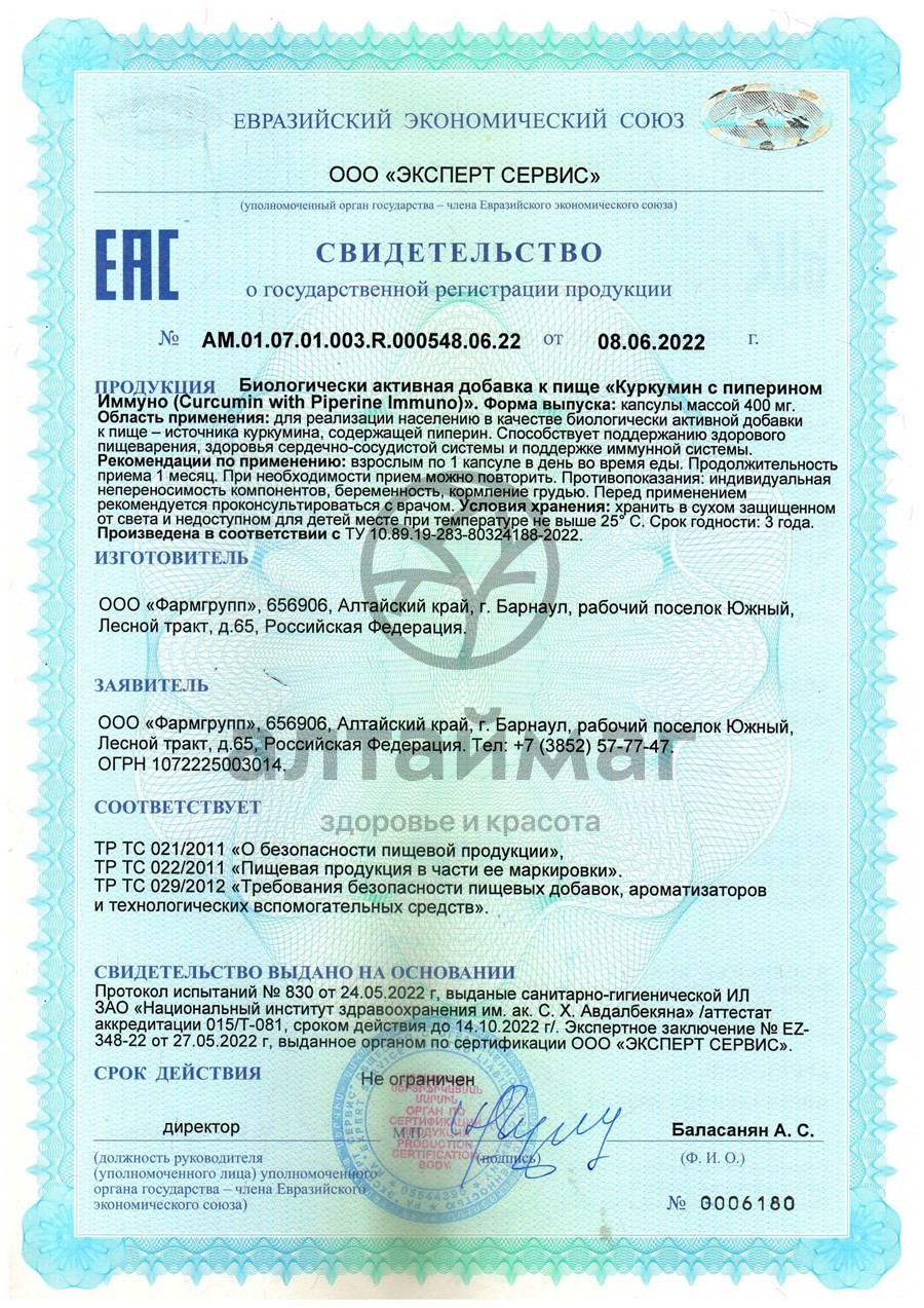 Куркумин c Пиперином Иммуно Фармгрупп №30 в Артёме