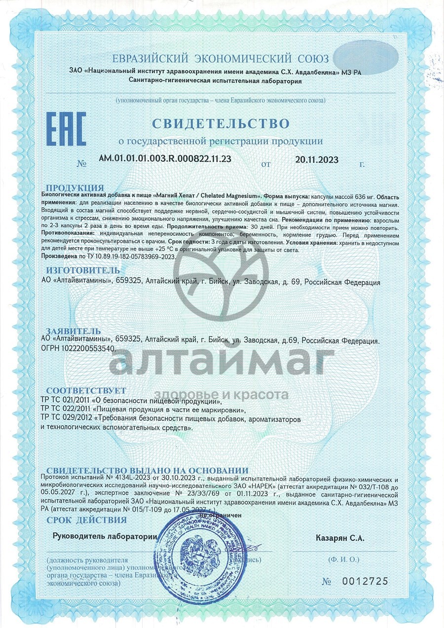 Есть вопросы по товару "Магний Хелат Алтайвитамины 120 капсул"?