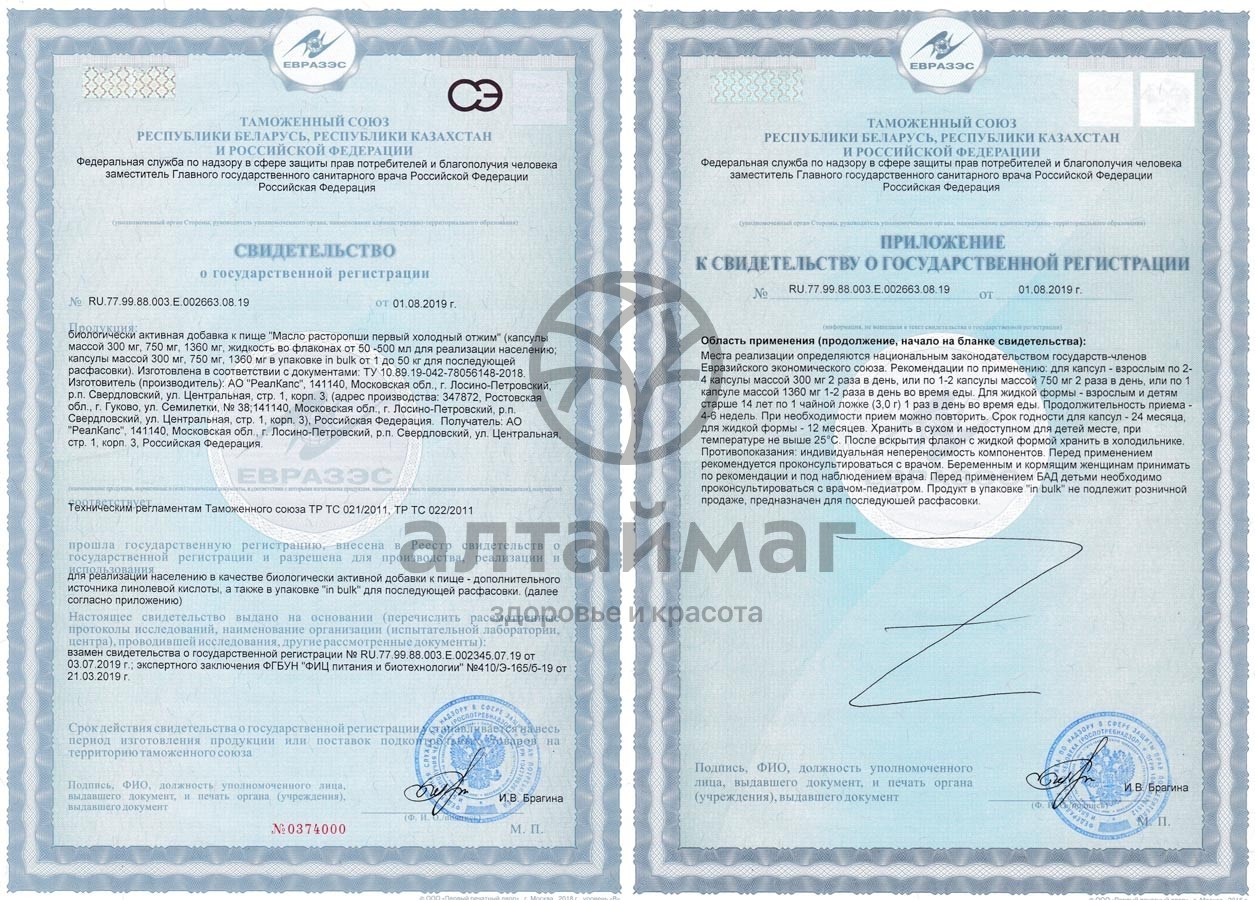 (капсулы массой - 0,75) масло расторопши, желатин пищевой, полиненасыщенные жирные кислоты не менее 55, витамин Е не менее 45