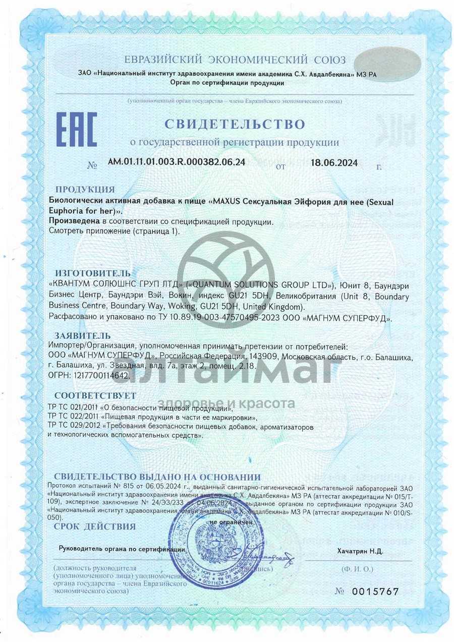 - Чтобы купить Maxus Sexual Euphoria для нее 60 капсул совершите всего несколько шагов: укажите количество продукта и нажмите на кнопку «Купить».