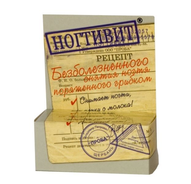 Нанести Ногтивит (не втирая), толстым слоем на пораженную поверхность ногтя так, чтобы не было его контакта со здоровой тканью. Закрыть ноготь пластырем; фаланга пальцев также должна быть закрыта пластырем со всех сторон.