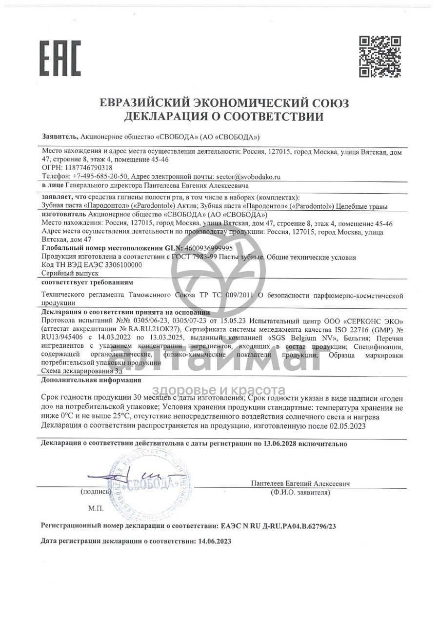 Есть вопросы по товару "Пародонтол зубная паста 63 г"?