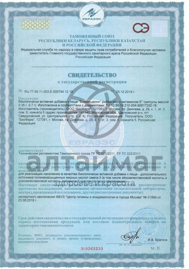 - Чтобы купить Рыбий жир Биафишенол с витамином Е 120 капсул совершите всего несколько шагов: укажите количество продукта и нажмите на кнопку «Купить».