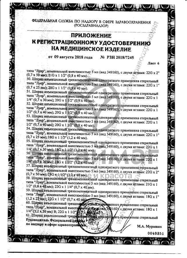 - -Игла 22G (0,7х40 мм) - надетая на шприц, съёмная
