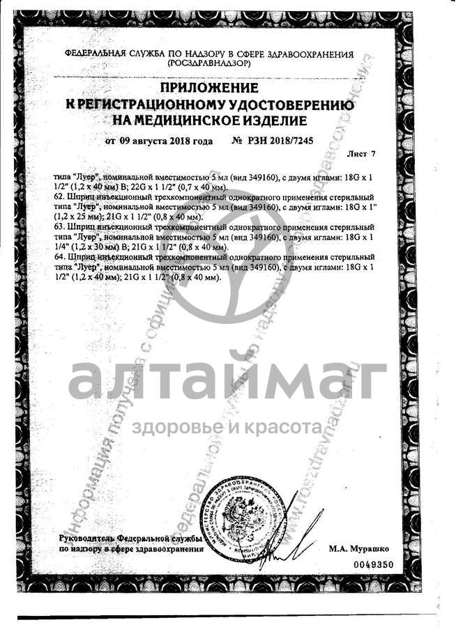 - Шприц стерильный инъекционный однократного применения, производства «ПАСКАЛЬ МЕДИКАЛ» 5 мл