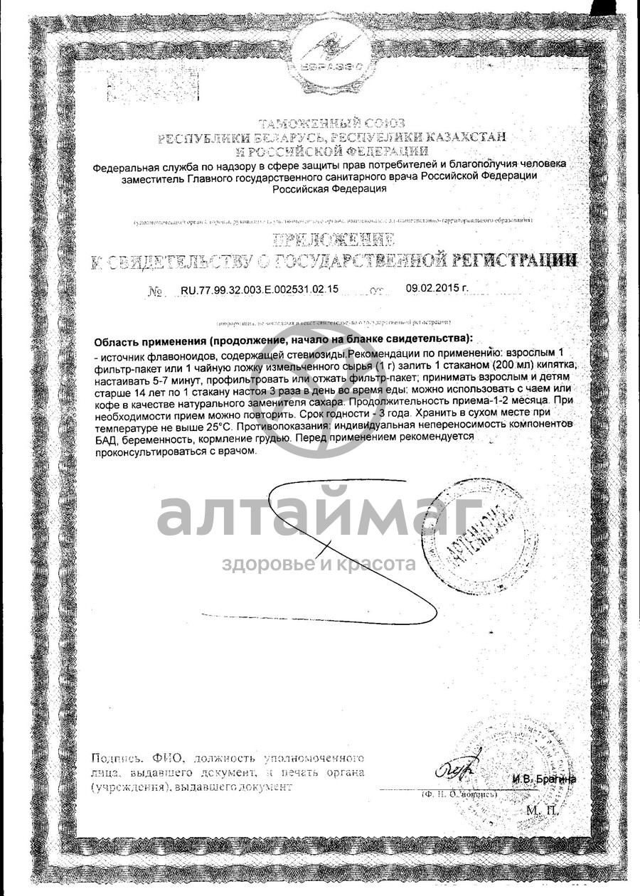 Натуральный сахарозаменитель. Рекомендуется при: сахарном диабете, сердечно-сосудистых и ревматоидных заболеваниях, остеохондрозе, атеросклерозе, аллергии и др.