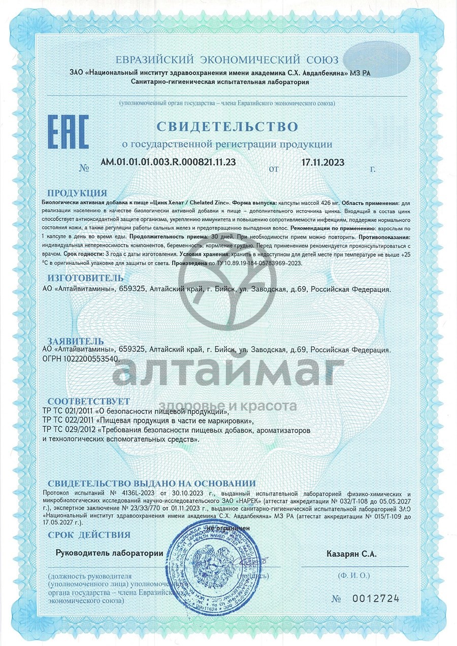 Цинк Хелат Алтайвитамины 90 капсул в Артёме