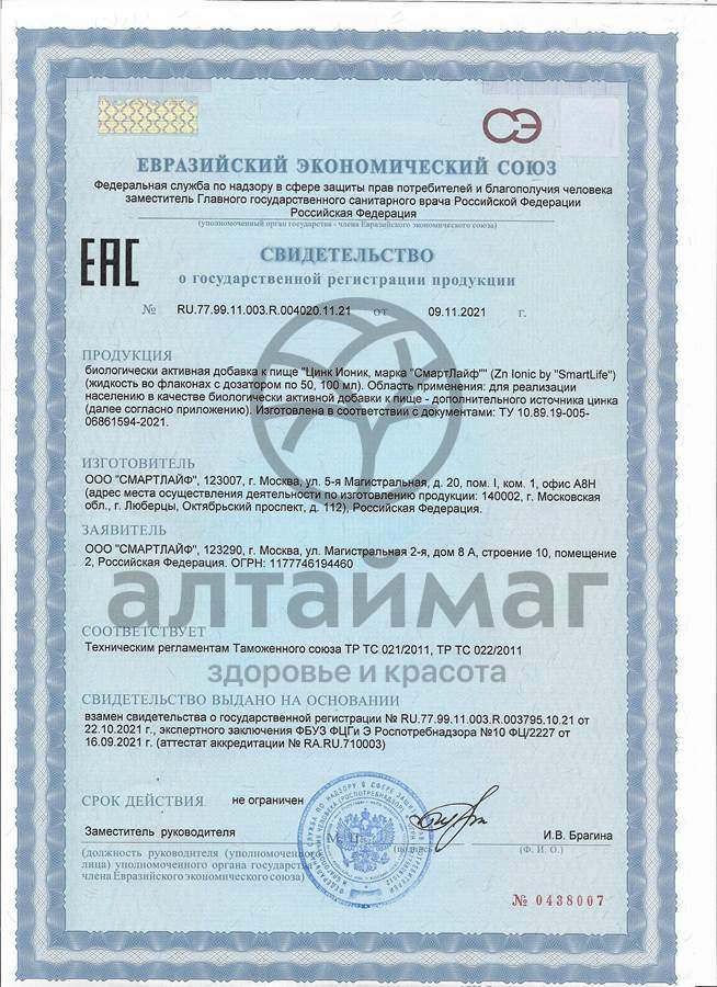 Есть вопросы по товару "Цинк Ионизированный Smartlife 100мл"?
