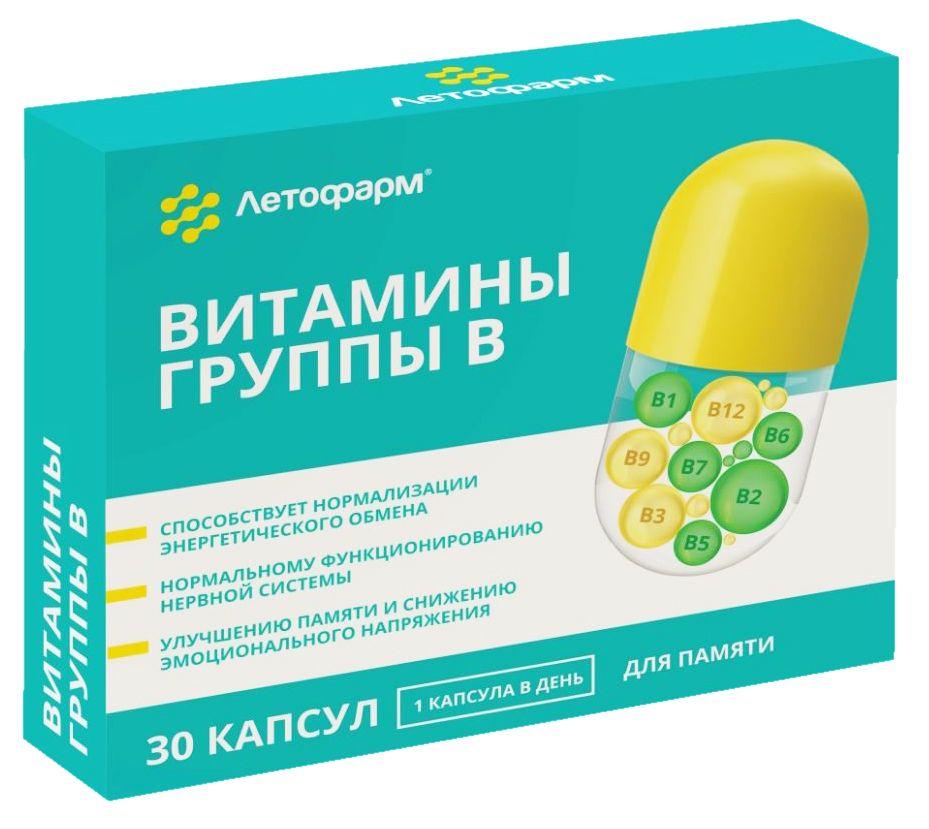 - Чтобы купить Витамины группы B Летофарм 30 капсул совершите всего несколько шагов: укажите количество продукта и нажмите на кнопку «Купить».